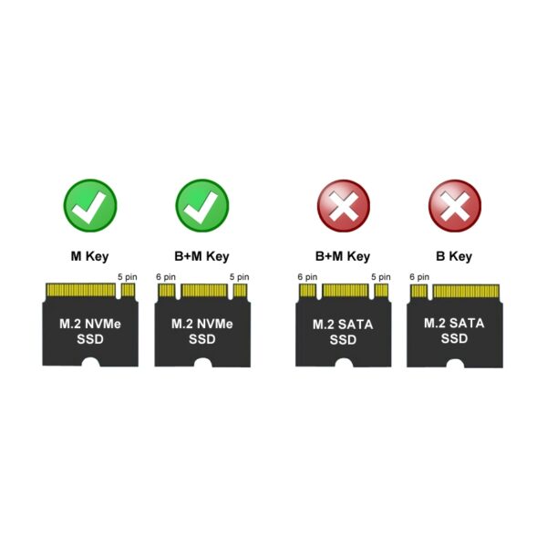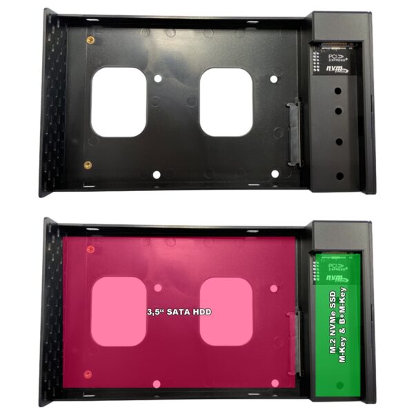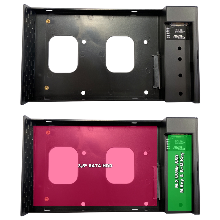 | Prikladno za | 8.89 cm / 3.5″ SATA HDD NVMe M.2 SSD – M-Key NVMe M.2 SSD – B+M key |