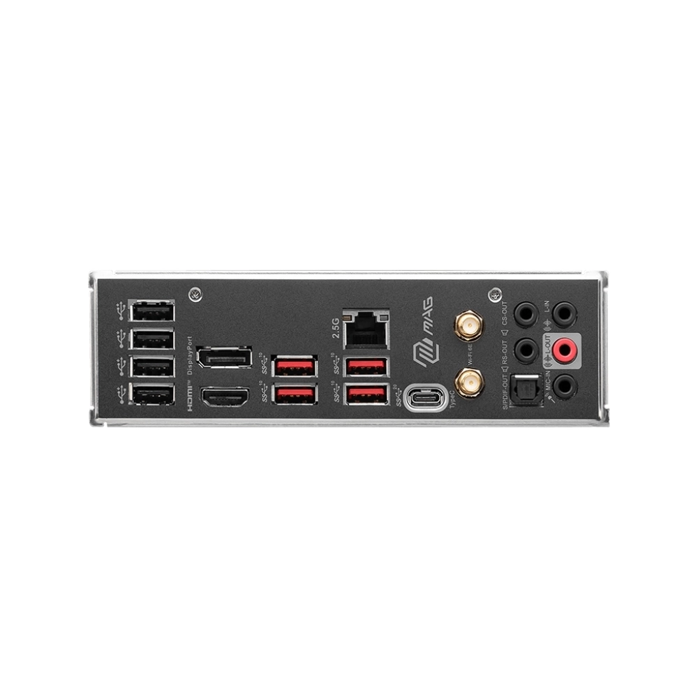| Zadnji panel portovi | USB 2.0, USB 3.2 Gen2 10Gbps Type-A, USB 3.2 Gen2x2 20Gbps Type-C HDMI 2.1, DisplayPort 1.4, 2.5G LAN Wi-Fi/Bluetooth konektori za antenu, HD Audio, Optical S/PDIF Out |