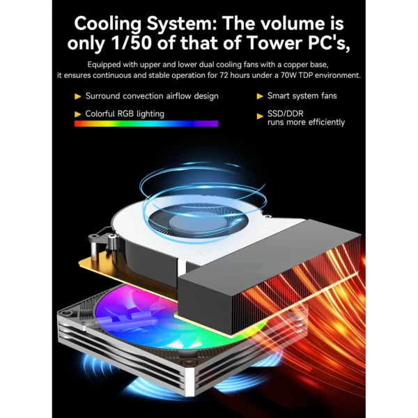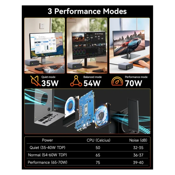 Napredno hlađenje Podesive TDP vrednosti: 35 W / 54 W / 65 W (do ~70 W) za balans između tišine i maksimalnih performansi.