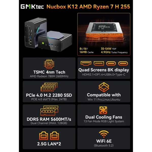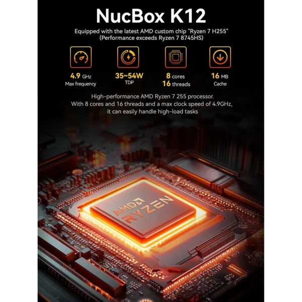 Mini PC GMKTec NucBox K12 AMD Ryzen 7 H255, 32GB DDR5, 512GB M.2,WIFI, VESA,Windows 11 Pro 60219