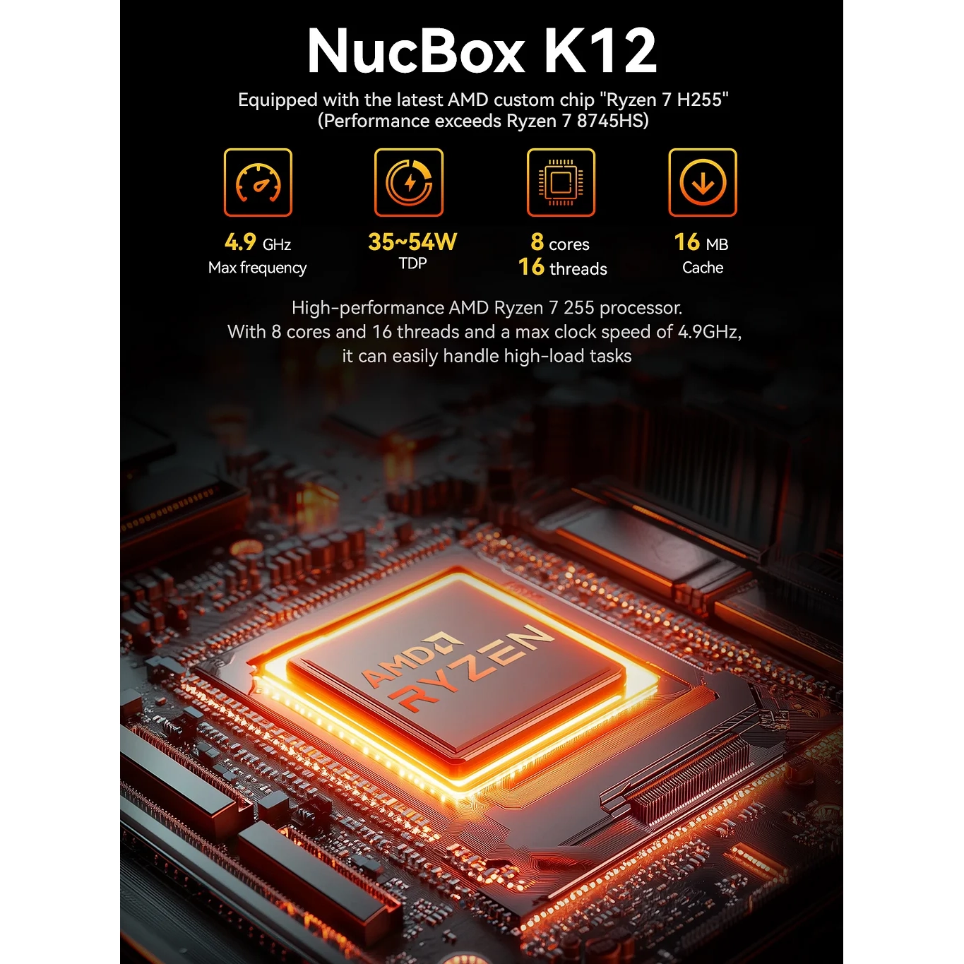 Kratak opis Premium mini PC sa AMD Ryzen™ 7 H 255 procesorom i Radeon™ 780M grafikom, idealan za profesionalni rad, gaming, kućni lab, NAS/Firewall i multimediju.