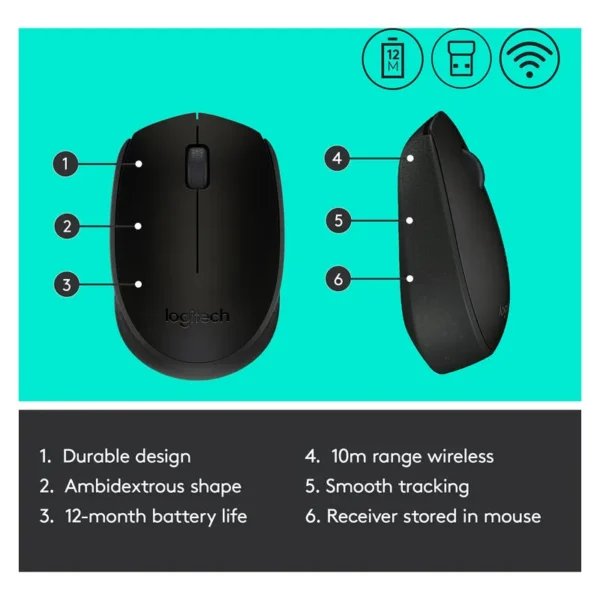 LOGITECH B170 Wireless Mouse Black 910-004798